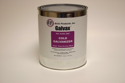 Protects metal surfaces. The 95% pure zinc cold galvanizing compound electro-chemically bonds with metals to stop rust creepage and corrosion. Sprays or brushes on cold. Heals itself when scratched. A coating of Galvax is comparable to hot-dip galvanizing for metal protection. Cures damaged hot dip coatings and repairs damaged galvanized surfaces. Used for welding touch-ups and spot-priming. This product is used as a zinc rich primer, zinc rich paint, zinc coating, zinc paint, zinc primer, cold galvanizing compound, cold galvanizing spray.
